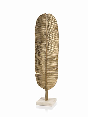 22" Tall Brass Sculpture on Marble Base, Banana Leaf Design