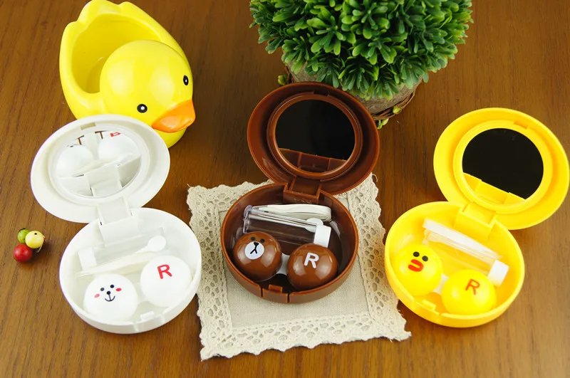 귀여운 동물 모델링 포켓 미니 콘택트 렌즈 케이스 여행 키트 쉽게 캐리 거울 컨테이너 렌즈 안경 상자 눈 케어 키트 K27
