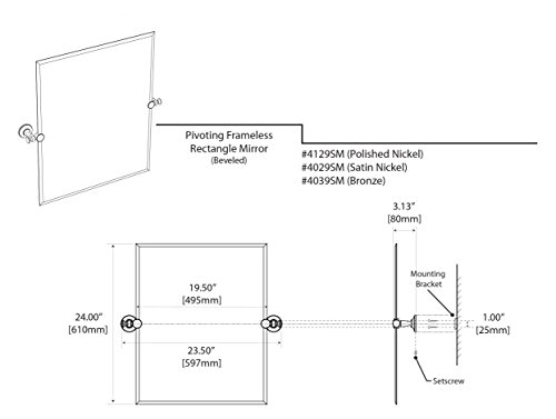 Gatco 4129SM Tavern Small Rectangle Mirror, Polished Nickel