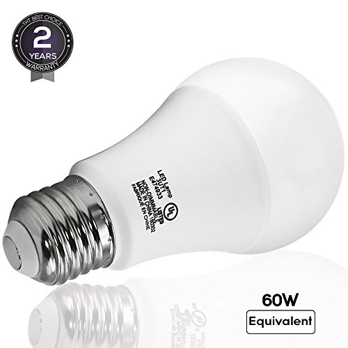 TORCHSTAR A19 LED Light Bulb, 9.5W (60W Equivalent), 5000K Daylight, 800lm, E26 Medium Base, UL-listed, 2 YEARS WARRANTY, Pack of 6