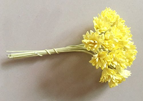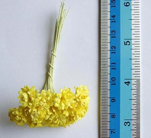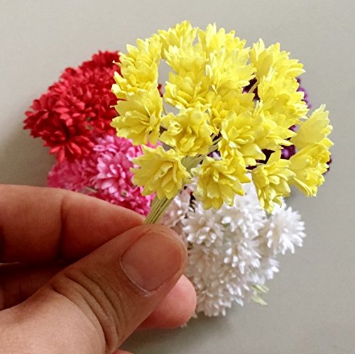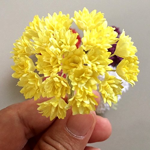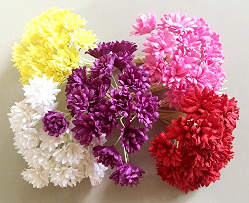 ICRAFY 100 pcs. Assorted Tiny Daisy Mulberry Paper Flower White Rope Wire Artificial Craft Scrapbook Wedding Supply Accessory DIY, Assorted Color, Size 1.0 cm.