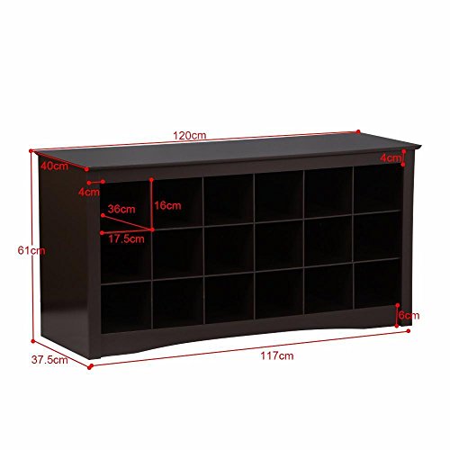 -. Feature : Each Cube Inner Size: 17.5 x 36.3 x 16 cm / 6.9 x 14.3 x 6.3'' (WxDxH) / Max. Weight Capacity: 100 Kg / 220 Lb / Coated with spraying powder paint, available in espresso laminate finish / Ideal for foyers, mudrooms, utility rooms, bedrooms, entryways, and hallways / Features 18 separate ample cubbies to keep your shoes organized