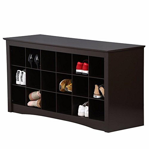 -. Title : Yaheetech Espresso Shoe Storage Cubbie Bench
