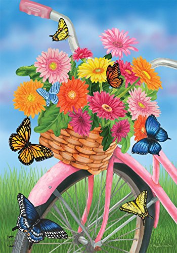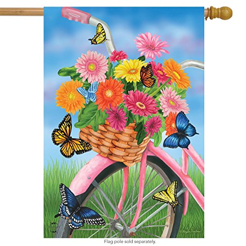 Spring Bike House Flag Floral Butterfly 28" x 40" Briarwood Lane