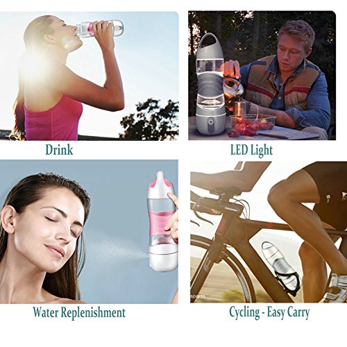 -. Feature : ★A new fashion and creative muti-functional water bottle since August,2017; / ★Remind your to drink, keep a healthy life; / ★Your best travel and home or ofiice necessities; / ★Perfect combination of sprayers and travel mug,really a cool idea to show a new life style; / ★Easy-carry bottle fit for your bag,sports bicycle;