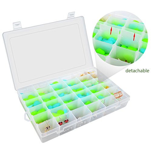 REMOVABLE DIVIDERS: The plastics box has 36 grids with adjustable dividers. The grids inside the box can be adjust to any size you like. So you can use these dividers to create your own style for different jewelry.