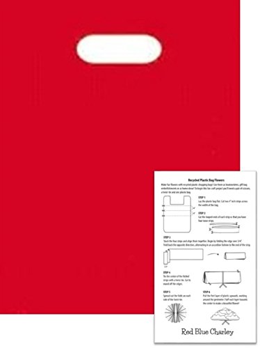 - 100 red 1.25 mil glossy plastic die cut handle bags and 1 craft instructional for making fun flowers from plastic bags.