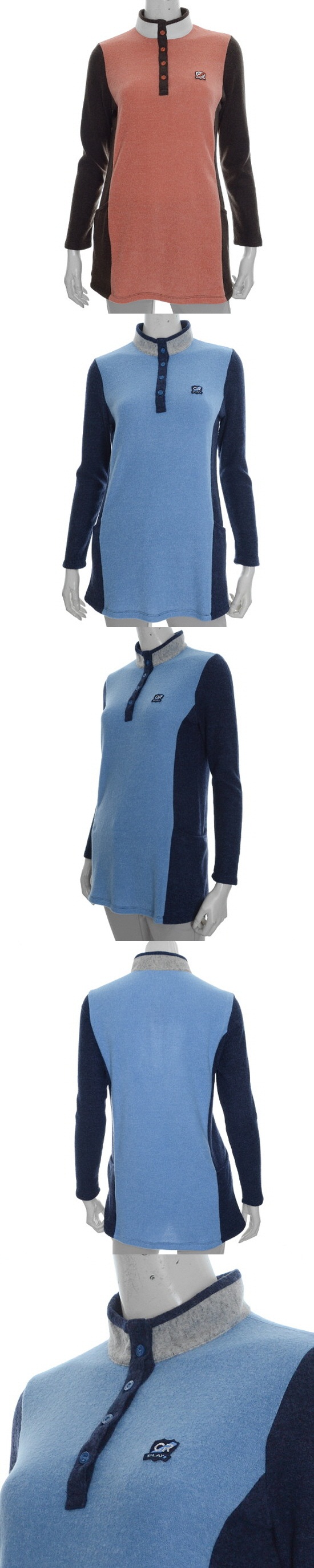 -부드럽고 따뜻한 기모 소재의 롱 티셔츠로 화사한 컬러 배색이 돋보이는 아이템.