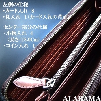 厚めの牛皮を丹念に植物タンニンでなめして仕上げられた素材をハンドメイドっで作りあげたラウンドファスナーウォレット。内側は片側だけをアコーディオンとしていますので大きく開口出来る為、今までの出し入れの困難さを解消した画期的な構造です。センター部分にはマチ付きのポケットがあり、レシートやメモなどがたっぷりと収納できます。オリジナルデザインロングウォレットです。【サイズ】縦10.0cm × 横19.5cm × 厚さ3.0cm【素材】牛革(表面・内側)【カラー】ブラック / ブラウン / ベージュ【仕様】カード入れ × 16(左右に8箇所ずつ)札入れ × 2小物入れ × 4(長さ18.0cm)コイン入れ × 1(ファスナー式)