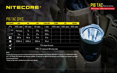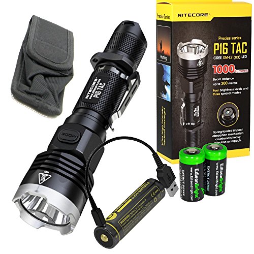 Nitecore P16 TAC (P16TAC) 1000 Lumens CREE LED long throw tactical flashlight, Direct USB rechargeable battery with 2 X EdisonBright CR123A Lithium Batteries Bundle