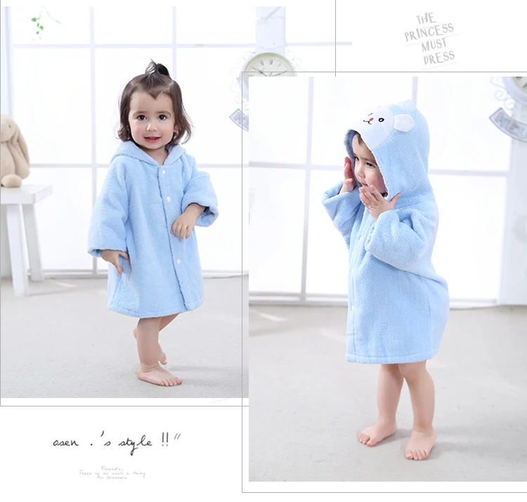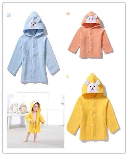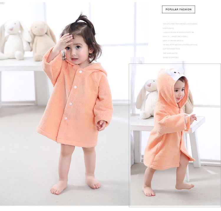 Bear bathrobe with buttons:kids bunny towels with buttons
