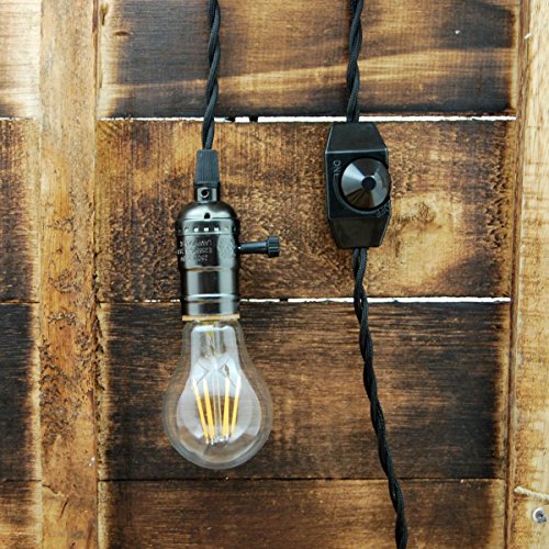 These cool and popular vintage-style cords are the perfect way to hang our LED Filament Light Bulbs (light bulb not included). Whirled Planet brand vintage-style twisted cloth cords reflect the classically cool design of the early twentieth century, giving any room a pop of style. With its 11' cord length and handy Dimmer switch, this pendant light cord is the perfect design solution for hanging our pretty vintage-style bulbs anywhere in your home, business, or as the perfect decor for your special event. Also comes in copper socket/black twisted cloth cord and copper socket/brown twisted cloth cord. We also carry a vintage-style 17' triple black socket/black twisted cloth cord kit. Whirled Planet brand means you get a superior quality product, with excellent customer service.Feature