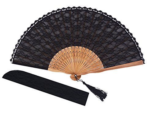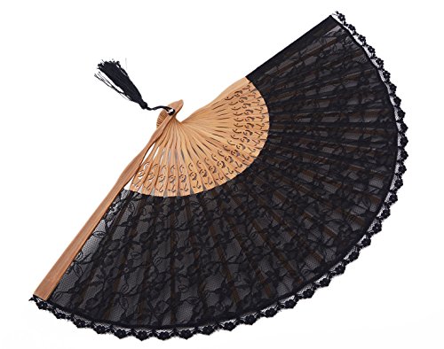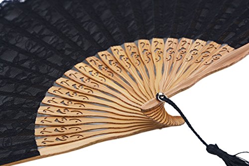Amajiji Chinese /Japanese Vintage Retro Style Bamboo Wood Silk Folding Hand Fan for women HBSY (23cm) (006)