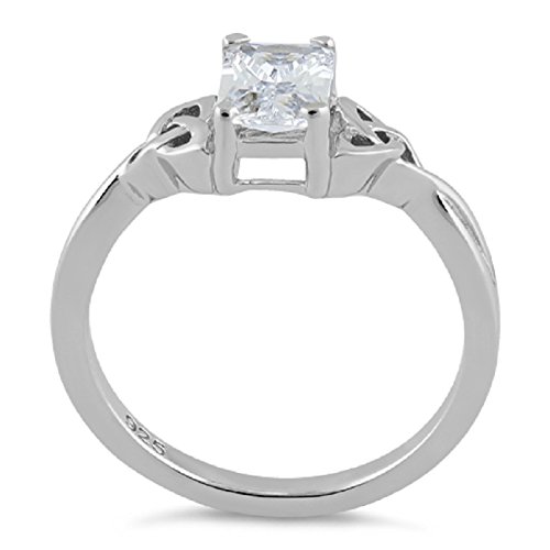 -. Binding : Jewelry -. Brand : Heartbeat -. Color : Clear -. Department : Womens -. Feature : 7 mm x 5 mm Emerald-cut Cubic Zirconia Center / 15 mm Total Length(knots & stone together) and 7.4mm Width(center) / Trinity Knot symbolize no beginning or end, an eternal spiritual life / Size 4 Through Size 10 High Polished and Rhodium Plated 925 Sterling Silver Ring / Jewelry Ring Gift Box Included -. Label : NA -. Manufacturer : NA -. ProductGroup : Jewelry -. ProductTypeName : FASHIONRING -. Publisher : NA -. Studio : NA -. Title : STERLING SILVER TRIQUETRA–THE TRINITY KNOT RING WITH 7x5mm EMERALD-CUT CZ "BLACK,CLEAR,BLUE" (SIZE 4-10)