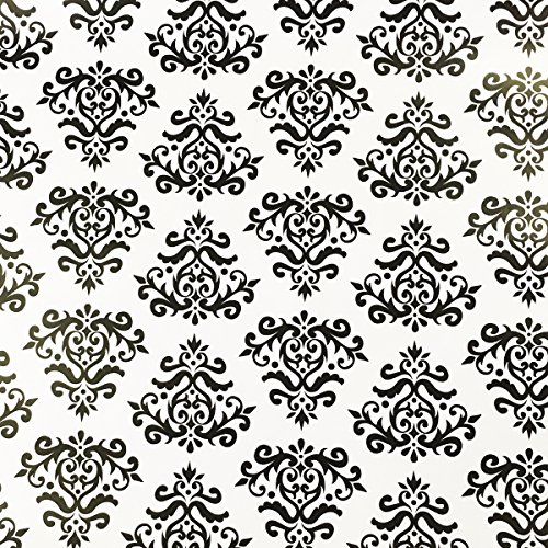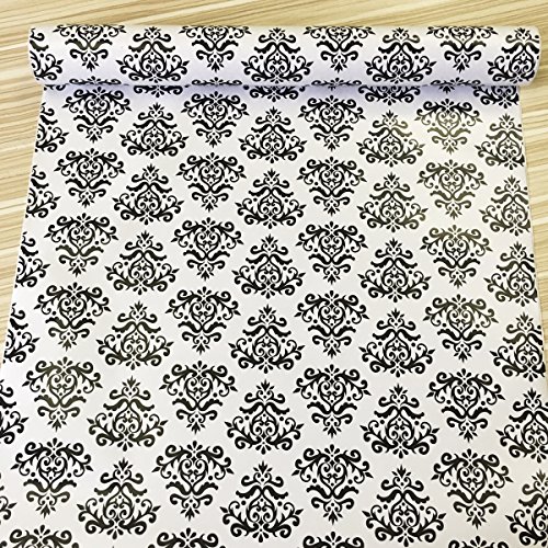 SimpleLife4U Self-Adhesive Shelf Liner Removable Contact Paper for Covering Apartment Dresser Drawers, Retro Black Damask, 17.7 Inch By 9.8 Feet