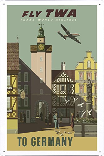 Tin Sign of Retro Vintage Travel Poster Fly TWA to Germany (20x30cm) By Nature Scene Painting