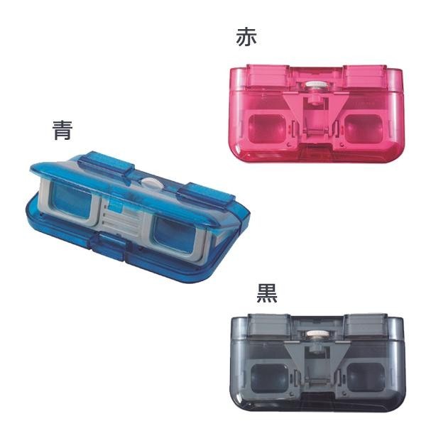 スケルトンタイプの折りたたみ式オペラグラスです。色は青、赤、黒の3色です。ピント調整付です。