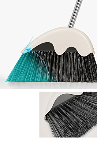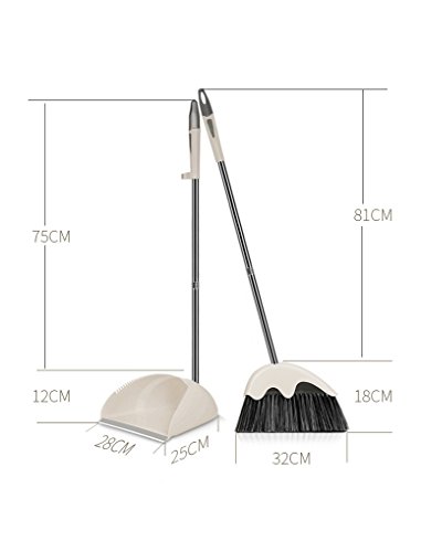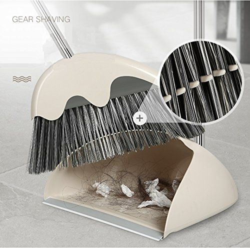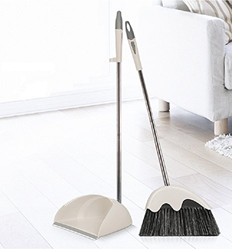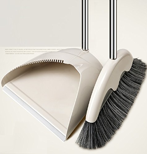Upright Standing Stainless Steel Dustpan and Broom Home and Office Sweep Combo Good Grip Sweeper (Cream)