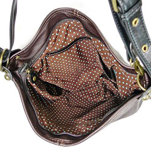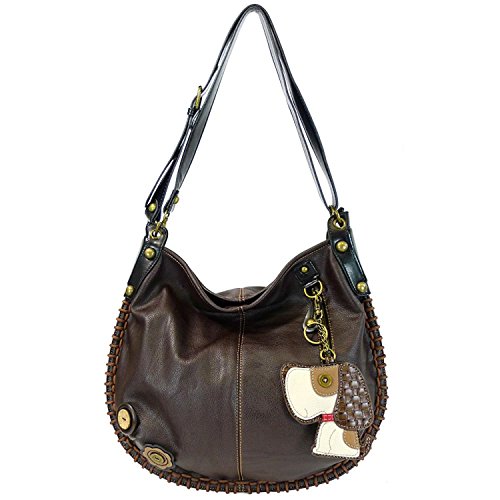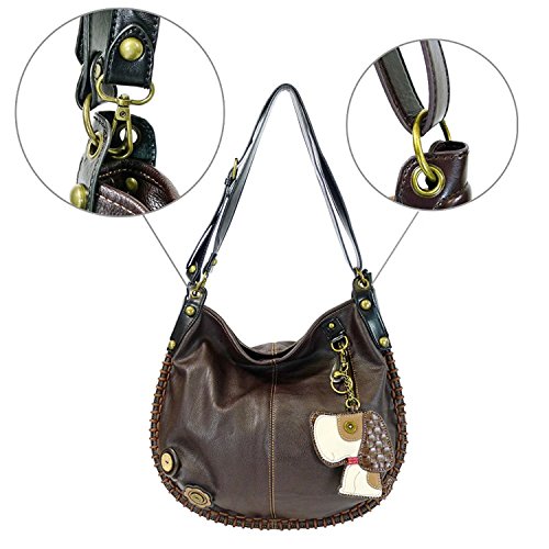 Chala Handbag Charming Hobo Crossbody Large Tote Bag Dark Brown Dog Vegan leather