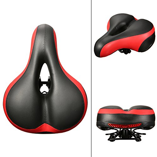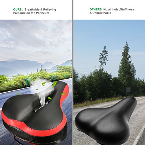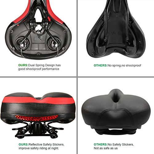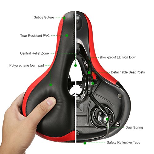 【Dual Spring Design & Comfortable】-- The bike saddle padded by thicken widened high-density foam and cushion surface is wear-resistant PVC leather.This bike seat is durable and comfortable. Dual spring design in the bottom of this seat , good elasticity, toughness, larger endurance, flexibility, and easy to deal with rough terrain.