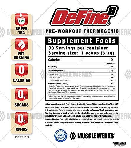DeFine8: Fat Burner for Women and Men, Pre-Workout Thermogenic - Watermelon - NEW ADVANCED FORMULA, Appetite Suppressant, Boosts Metabolism...
