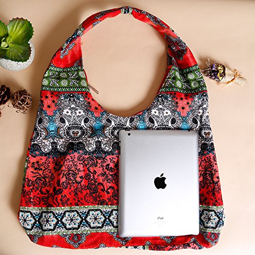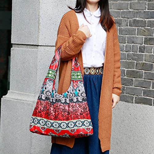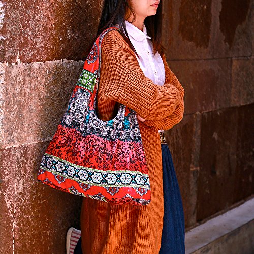 Large Size Ethnic Style Stylish Cotton Fabrics Shoulder Bag Multicolored Women Handbag