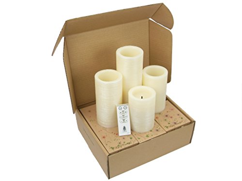 Ivory Flameless Real Wax Candles with Remote 4, 5, 6, and 8-Inch Unscented LED Candles of 4