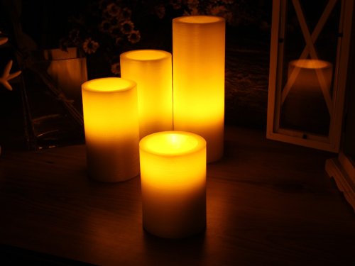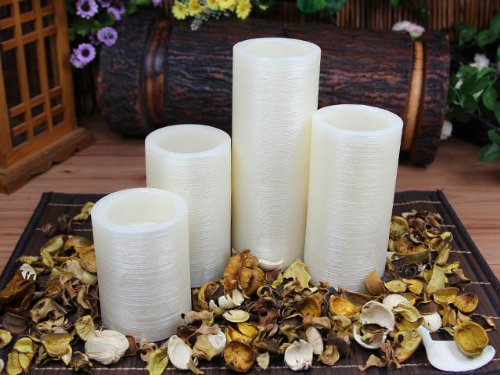 - Because of the real wax and the hand crafted glitter touch they have a very natural look. Includes a set of 4,5,6,8-inch Ivory color candles with 1 remote