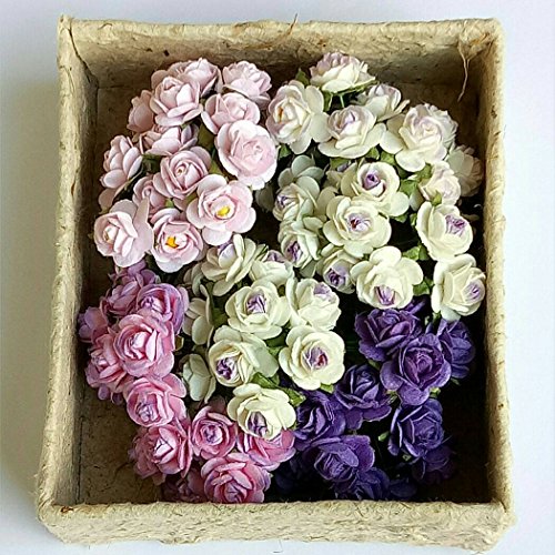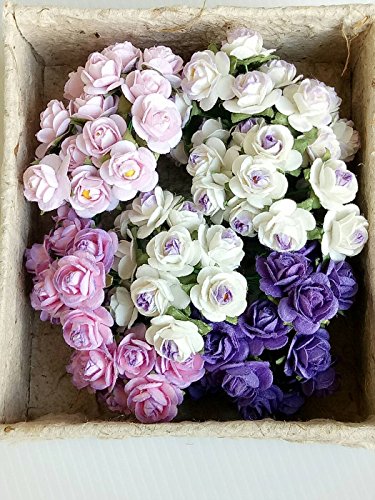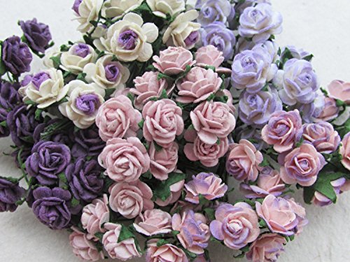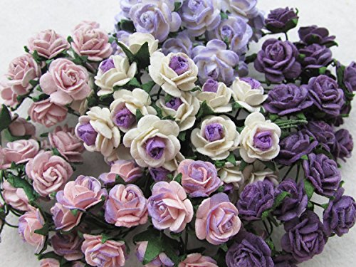 100 pcs mini Rose mixed Purple color Mulberry Paper Flower 10 mm scrapbooking wedding doll house supplies card