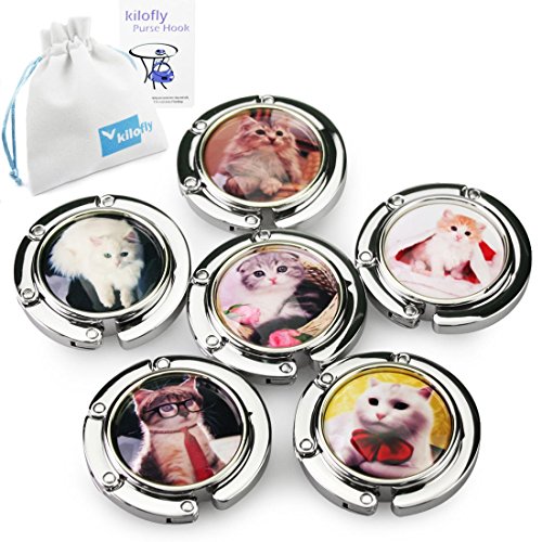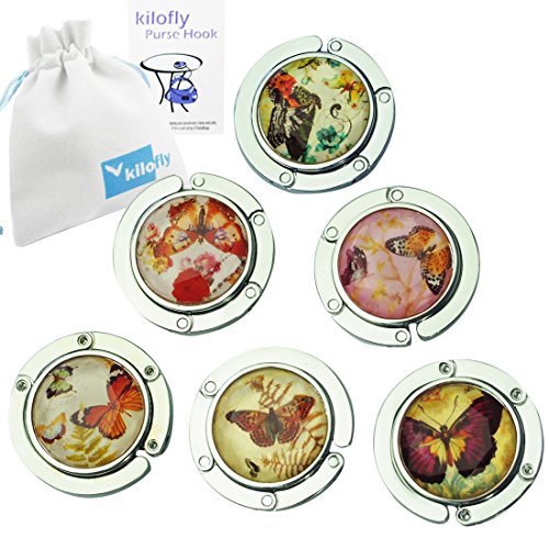 Studio : kilofly Publisher : kilofly Binding : Kitchen Product Description This set of 6 kilofly Purse Hooks are perfect gifts for ladies, and each purse hook comes with a kilofly pouch. The embedded colorful acrylic plastic makes a difference to those normal purse hooks while the silver colored metal is foldable and for easy storage. They are durable and fit on most tables.