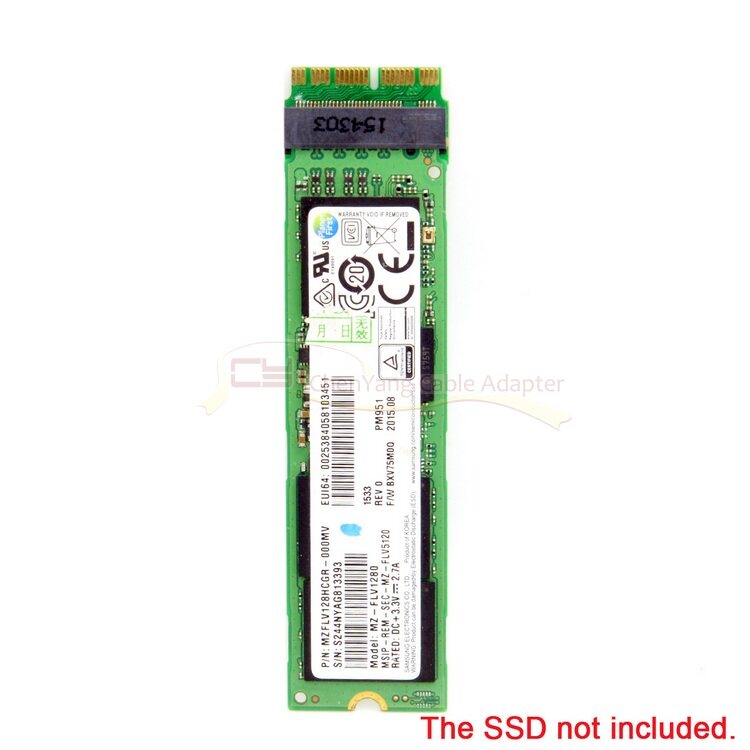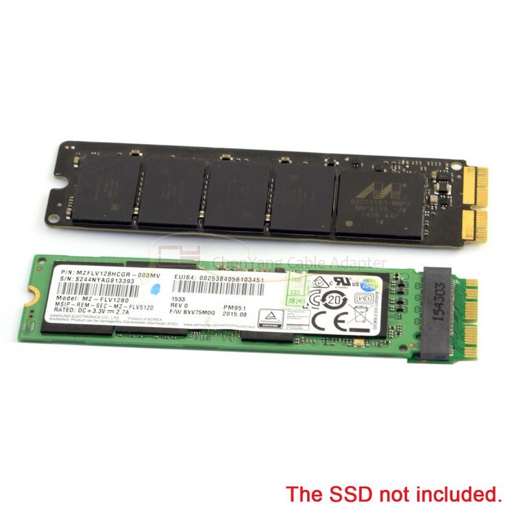 This adapter is designed to convert a PCIe x4 M.2 NGFF with a size of 2280 (80 mm wide and 80 mm long) (must be an AHCI protocol and does not support the PCIE X4 NVMe transport protocol) to a 2013 version 2014 version 2015 Apple MacBook AIR A1465 A1466 and 2013 Edition 2014 Edition 2015 Edition Apple MacBook Pro A1398 A1502 Laptop SSD with solid state drive.