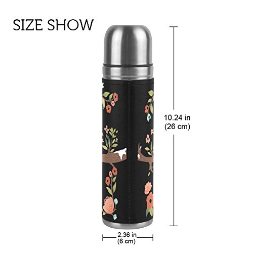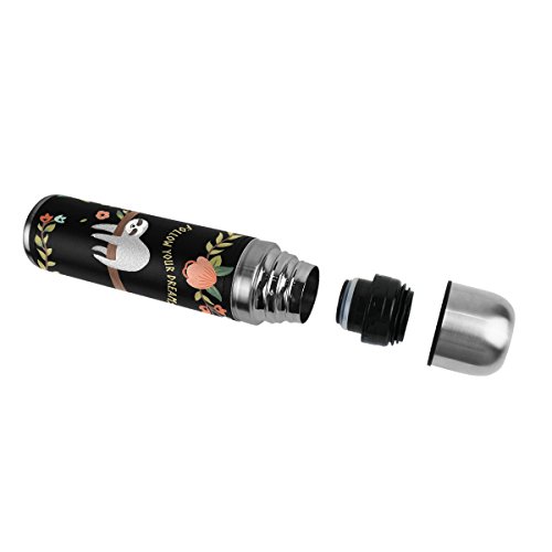 Vacuum Insulated Water Bottle, 17oz PU Leather Sloth Symbol Thermos Bottle, Stainless Steel Double Wall Beverage Bottle, Leak-proof Travel Coffee Mug by E-LIFE