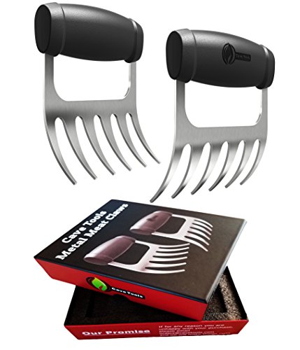 Meat Claws - STAINLESS STEEL PULLED PORK SHREDDERS - BBQ Forks for Shredding Handling & Carving Food from Grill Smoker or Crock Pot - Metal Barbecue Slow Cooker Handler Accessories by Cave Tools