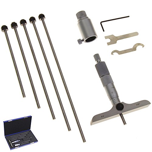 Anytime Tools Premium Depth Micrometer 0-6"/0.001" x 4" Base Flat Probe Machinist Gauge Tool