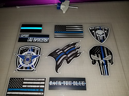 -. Title : Decals By Haley Mega Variety Pack of Thin Blue Line Police Officer Blue Lives Matter American Flag vinyl decal sticker Car Truck BLM(9 Pack)