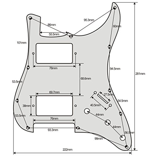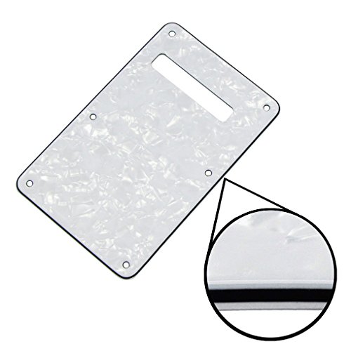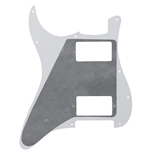 Product Description Specification:Humbucker-Humbucker pickguard, 11 hole standard mounting pattern with counter-sunk mounting screw holes.3 control pot holes pre-drilled in Standard Volume-Tone-Tone Positions (Positions 1, 2, 3).1 standard size switch cut with 2 switch mounting holes (1 each side of switch cut; not counter-sunk).Humbucker hole size: 38mm x 70mmHumbucker screws center/center: 78mmTremolo Spring Cover/Back Plate with standard 6 screw mounting hole pattern.Material: Made of 4ply Pearl Plate, with off set screw holes and beveled edge.With pure aluminum foil shielded.Color: White PearlWith protective film on the surface, while using please split it off.Note:Item's color might be different from the picture because of the aberration.Package Includes:1 x guitar pickguard1 x back plate25 x mounting screws 0