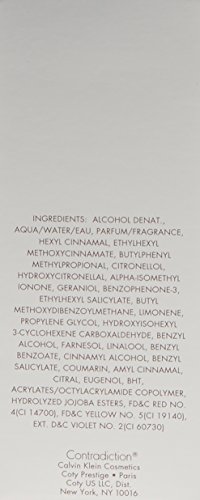 Launched by the design house of Calvin Klein in 1997, Contradiction is classified as a floral oriental fragrance. This feminine scent possesses a blend of: pure pepper, rose, satinwood and sandalwood. It is recommended for casual wear.
