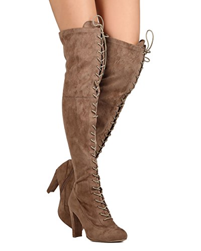 Studio : Wild Diva Publisher : Wild Diva Binding : Apparel Product Description These extremely sexy over the knee boots are made with a faux suede upper, almond toe, and stitch accents. Also made with a single sole, cupped chunky heel, and side zip for easy slip on and off. The lace up front features add a sophisticated exotic look. 0