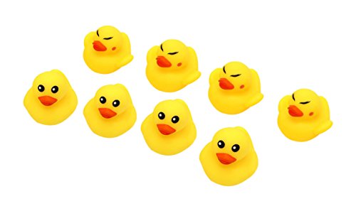- Ideal bath toys: an assortment of eight rubber duckies that squeeze and squirt fielding water
