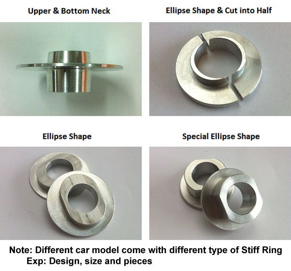 Stiff Ring made of special formula alloy aluminium. It used to correct the car body basic geometry by filling the gap between the sub frame bolts, sub frame and the car body bolt hole. Car engine, transmission, suspension and the body shelf are mounted on the sub frame. Thus, correcting the geometry setup with Stiff Ring, the car handling will be improved significantly. By eliminating this free gap, vibration to the car chassis & undercarriage will greatly reduce. This helps to protect & prolong the car undercarriage parts life span. Eg: Steering rack, lower arm and etc.