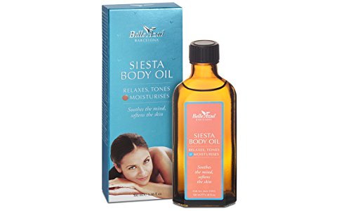 -. Feature : BATH & BODY OIL containing Organic Argan Oil and Sweet Almond Oil helps to moisturize dry skin and maintain your body's natural firmness while it softens, protects and rejuvenates skin. / VITAMIN E & FATTY ACIDS improve skins texture and elasticity leaving it with a healthy radiant glow. Excellent hydrating body oil that you can use all over leaving skin feeling supple and smooth to the touch! Add Siesta Oil to your bath for aromatherapy benefits as an, smooth aromatherapy oil to help unwind and release muscle tension soft and silky. / IMPROVES APPEARANCE OF skin imperfections with daily use. Improves circulation and skin cell regeneration providing ultimate defense against signs of aging. Powerful nourishing, toning, firming and hydrating body oil more moisturizing than using body lotions or creams. / IDEAL BODY MASSAGE OIL enriched with a blend of natural essential oils including Rosemary, Jasmine and Geranium with a relaxing aroma a sense of well-being, relaxation and tranquility. / LIGHTWEIGHT LUXURIOUS MOISTURIZING OIL absorbs easily into the skin. Perfect rejuvenating body oil to use daily after a shower or bath! Suitable for all skin types. Made in Spain. Not tested on Animals, Paraben free, Phthalate free.
