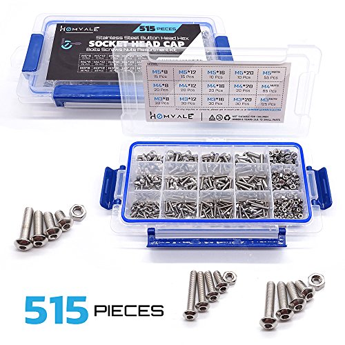 304 Stainless Steel Screw and Nut 515pcs, M3 M4 M5 Hex Socket head Cap Screws Assortment Set Kit