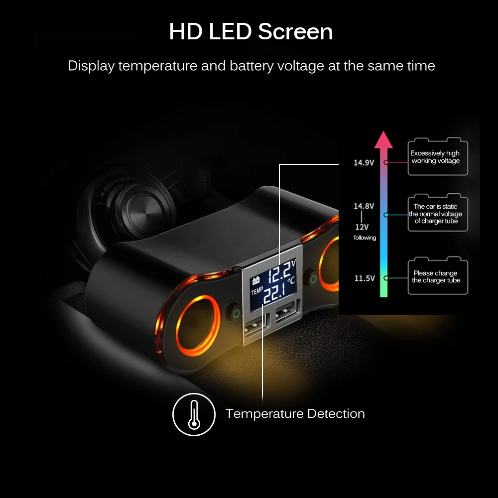 feature 2:Universal LED Display Mini Travel Car Charger