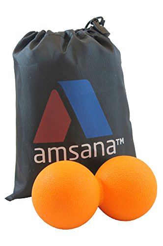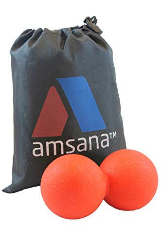 Amsana™ Double Lacrosse Ball - Peanut Massage Ball - Works for upper back, neck, scapula and the thoracic spine - Mobility Wod Tool - Free Nylon bag (Orange)
