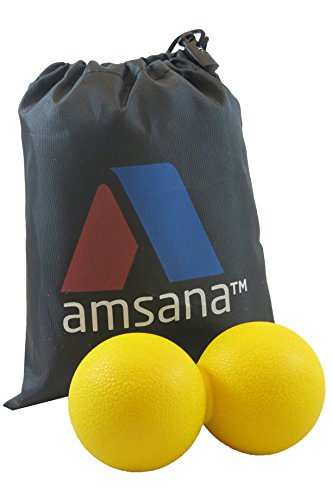 Amsana™ Double Lacrosse Ball - Peanut Massage Ball - Works for upper back, neck, scapula and the thoracic spine - Mobility Wod Tool - Free Nylon bag (Yellow)