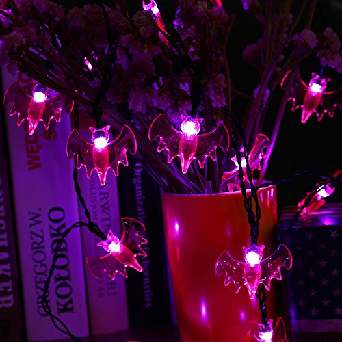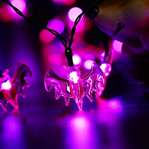 - 3 packs of string lights - 1 string 20 LED of Ghosts illuminate white lights, 1 string of 20 LED of Pumpkins illuminate orange lights and 1 string 20 LED of Bats illuminate purple lights