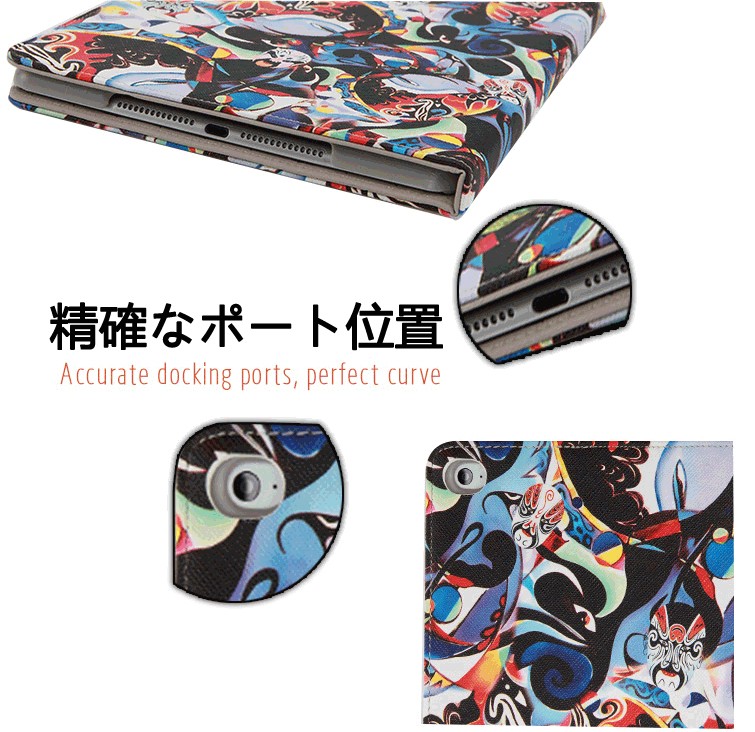 iPad多機種対応京劇風柄手帳型ケーススタンド機能付きで、高品質で手触りの良いPUレザーを使用、iPad 画面をいつもきれいに保つのに役立ちます。iPadの操作性を活かすため、Dockコネクター、イヤホン、スピーカー等の装着部分はキレイに加工されており、着用したまま使用可能です。