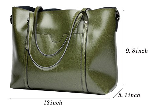 -. Feature : Fabric: oil wax cowhide, 100% genuine leather. Linning: polyester/cotton blend. Gun-color plating hardware, high quality and durable. / Top Zipper closure, attached a removable shoulder strap and adjustable soft handles, come with a extra small purse for charge and phone. / 1 open front pocket, 2 generous main pockets, 1 middle zippered pocket for IPAD, 1 inner side zippered pocket for wallets, 2 compartments open pockets for phone/keys/card, all stuffs can be well organized. / Pure color design, casual and formal style, easy to mix and match it with your day to day fashion outfit, large capacity, great for working, dating, patry and travel. / Dimensions: 13" x 5.1" x 9.8" inches