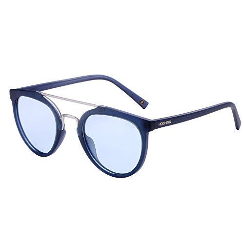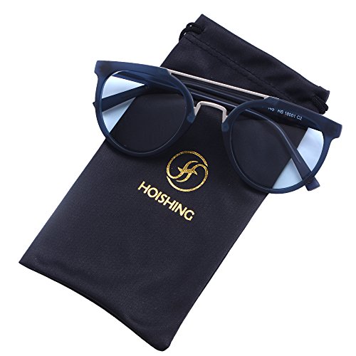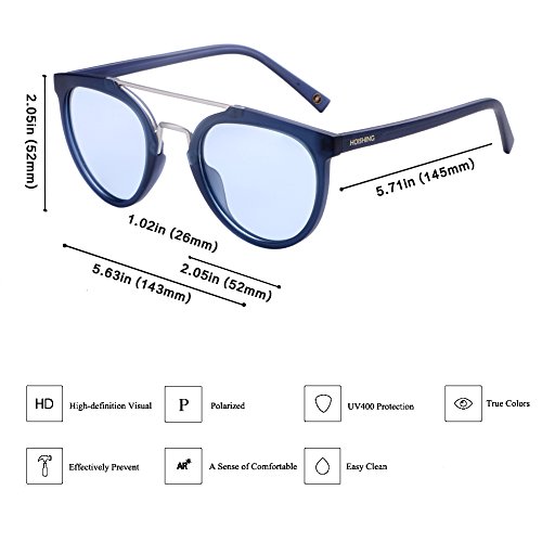 Hoishing Hot Crossbar Round Polarized Sunglasses with Double Metal Bridge for Women and Men