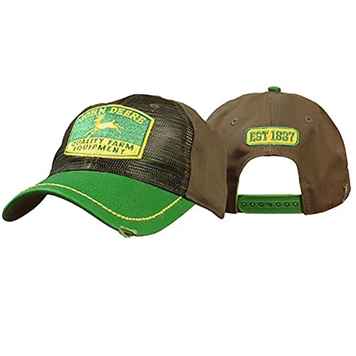 Product DescriptionJohn Deere reverse trucker with mesh front and solid twill back. The bill is contrast John Deere green with yellow stitching.0